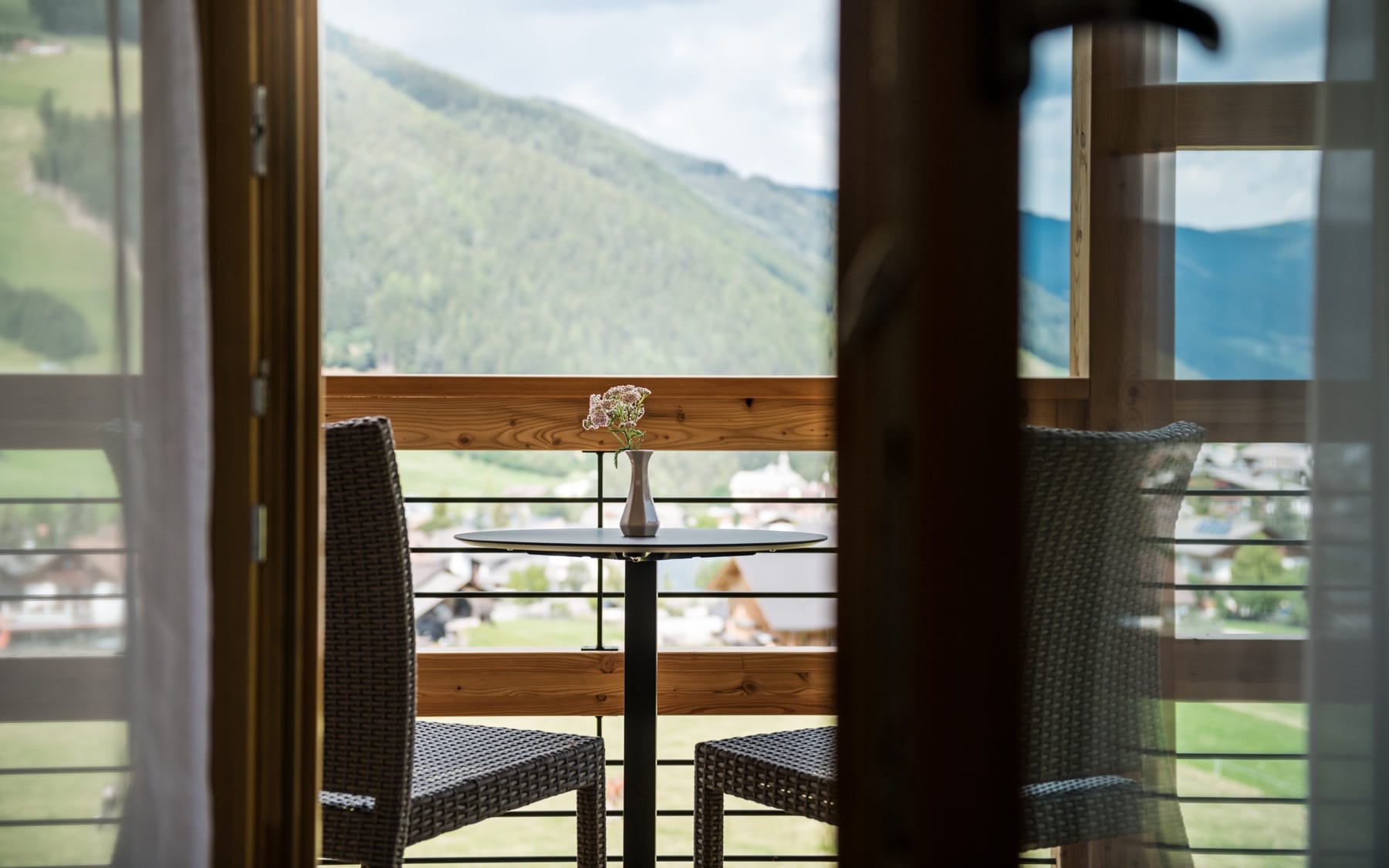 Whether you're looking out from the balcony of your room, relaxing in the warm pool water, enjoying one of the many culinary delights or having a coffee in the garden, you will be constantly surrounded by idyllic natural views. The imposing Piz da Peres, Sas de Crosta and Monte Paraccia, the fir and larch forests of the Piz de Plaies and a splendid view of the village delight your every morning and evening.